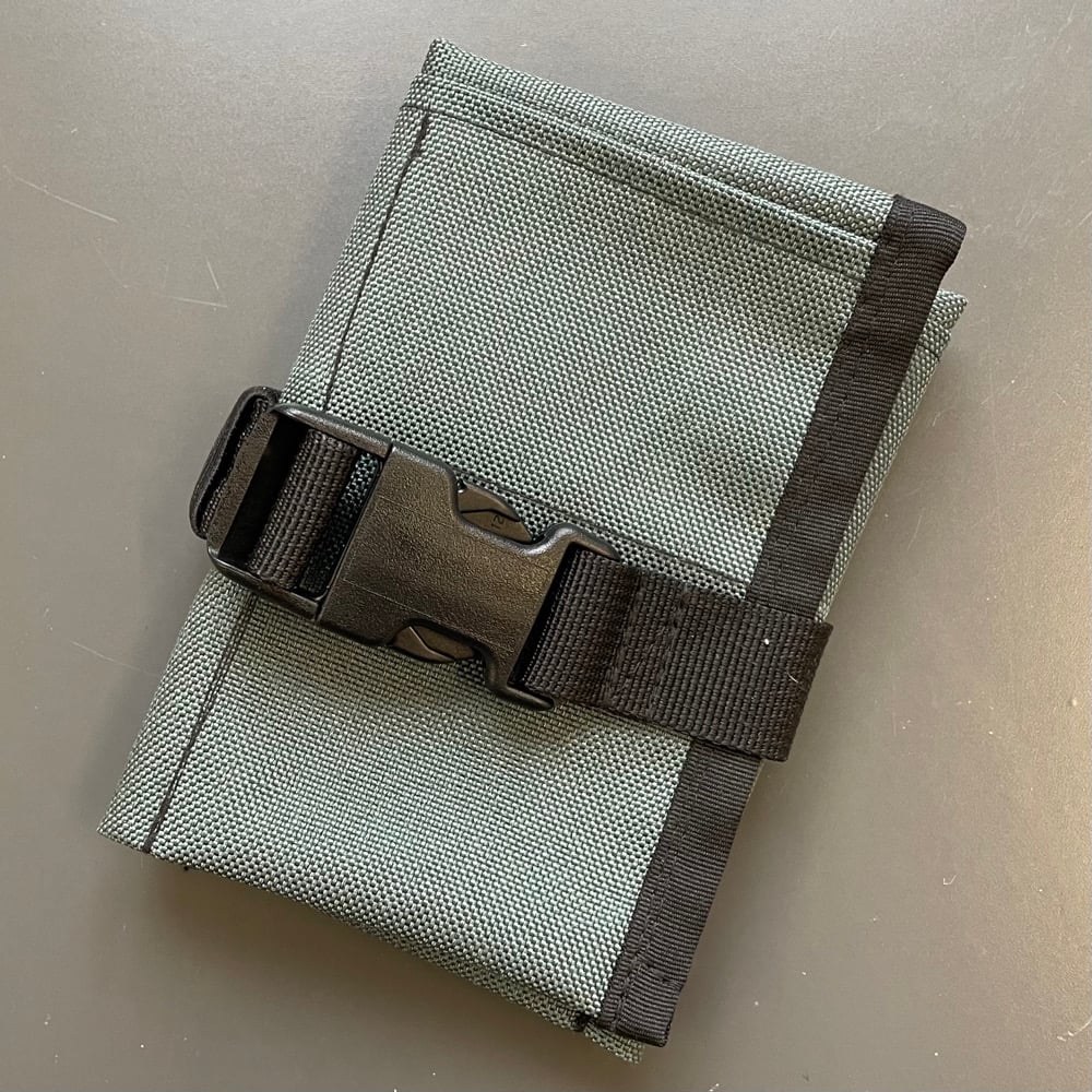 This version is made with grey Cordura from a former messenger bag maker; lined with orange poly flag material.